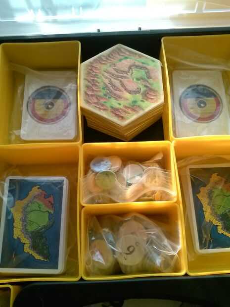 He encontrado que el Add-on de 5-6 jugador encaja perfectamente en el segundo espacio con todos los pedazos de mar y tuercas hexagonales del mapa extra.