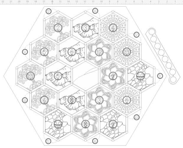 Usando su editor de vectores favorito, crea tu diseño! (O utilizar los que adjunto. Tenga en cuenta que los archivos adjuntos incluyen piezas para la expansión ciudades y caballeros).