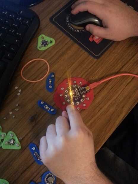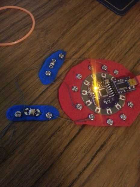 Ajuste que el extremo macho encaje (ahora en su hilo conductor) para un snap de extremo hembra conectado a uno de los pines en el componente para conectar componentes.