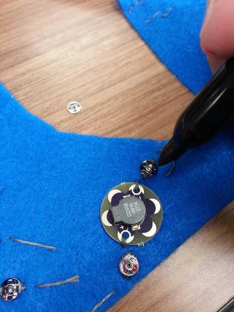 · Cuidadosamente el complemento femenino con un rotulador negro de color