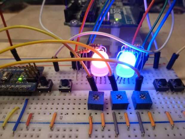 Puede parecer una tarea fácil: sólo tiene que conectar tres potes (trimmers, potenciómetros, potenciómetros de ajuste) a tu Arduino para ajustar el rojo, verde y azul. Bien, la práctica demuestra no es que fácil (simplemente trates de hacerlo). Así que aquí está el instructivo que le ayudará a hacer tus LEDs RGB (por lo menos, posible) Mostrar exactamente los colores que usted necesita. No necesita tener ninguna experiencia de programación o ingeniería a usarlo a menos que quieras experimentar. Los bocetos son proporcionados.