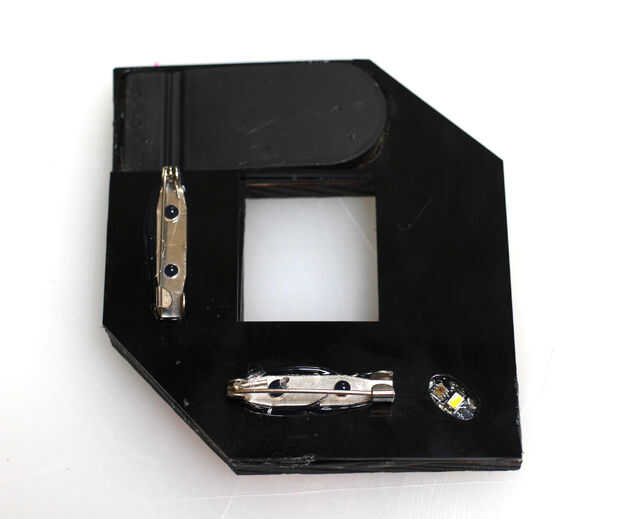 Tome el pin dos respalda y epoxy en la parte posterior. Es bueno poder usar el broche horizontal o vertical, por lo que colocó uno en cada posición.