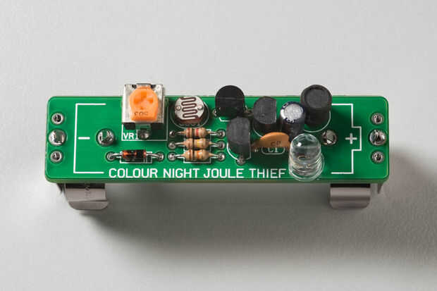 Un Joule Thief es un circuito sencillo que aprovecha el retroceso inductivo producido por un elemento inductivo (un toroide herida en este caso) para intensificar la tensión. Este voltaje adicional a la salida del circuito puede utilizarse para dispo