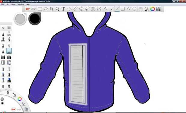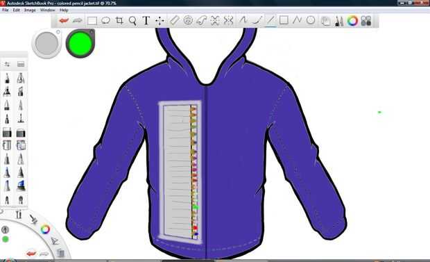 Para los lápices de colores, seleccione el pincel mediano y un color bronceado. Hacer triángulos para demostrar los puntos de los lápices de colores abajo la chaqueta, cada uno en su compartimiento individual. Entonces de sus consejos de color diferentes tonalidades del arco iris.