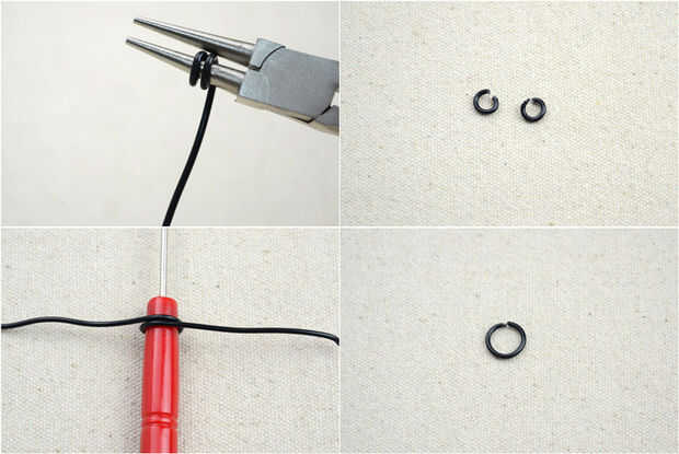 3 º, con nariz redonda alicates hacer dos lazos alrededor de la nariz y snip con los cortadores para crear pequeñas anillas. Hacer lo mismo utilizando un punzón para hacer un gran anillo.