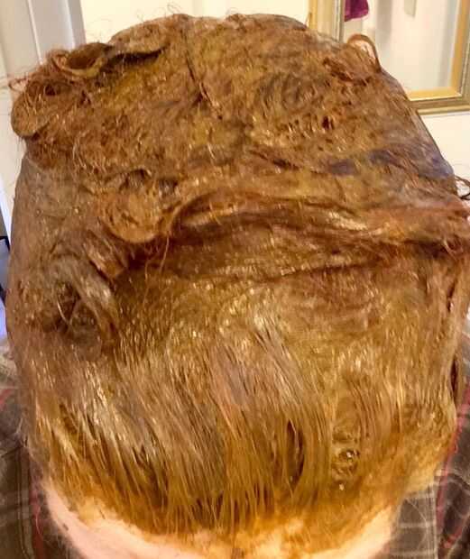 Incluso he poner la henna en antes de dormir y dormía con una toalla para limpiar la almohada. Si se seca la goma de la alheña no lastimará su pelo o la piel y elimina así la mañana siguiente, podría dar a dejar un interesante patrón en su almohada, si tu cabello no está bien cubierto. NUNCA a tratar de dormir con tintes químicos o podría despertar Calvo!