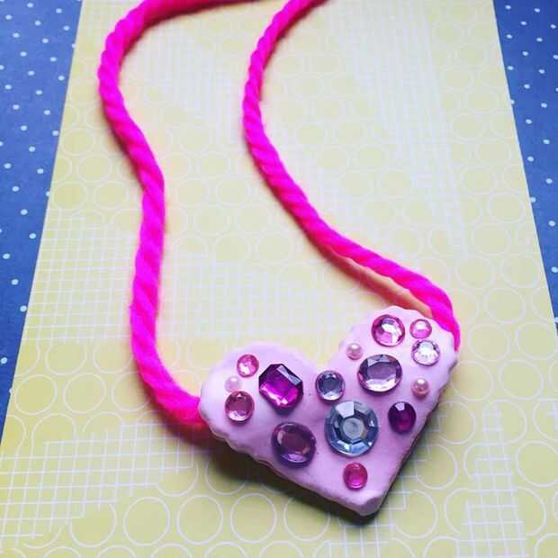 Empuje el hilo o cordoncillo con el colgante de corazón. Si el hilado es más esponjoso, es posible que necesite la paja para ayudar a pasar.