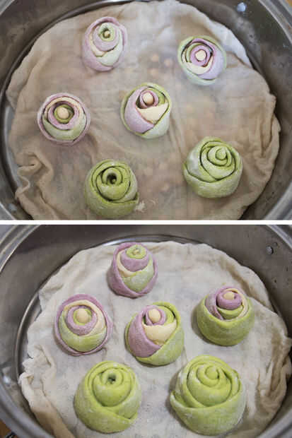 Coloque los panes en un vapor, dejar aproximadamente 1" palique entre cada uno. Mantienen la dejó caliente y húmedo, van en aumento por 30 minutos. Luego vapor de 12 ~ 15 minutos.