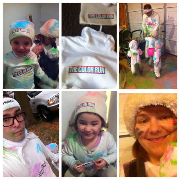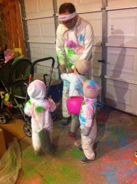 Cuando tienes 3 niños pequeños y están crónicamente subempleados, todo lo que hagas tiene que ser bajo costo y alto concepto; disfraces de Halloween no son la excepción. Mi mujer participó en The Color Run 5K hace unos años, y parecía divertido (excepto ejercicio todo eso molestos). ¿Cómo podía ser un corredor de Color sin correr? Adivinaron: truco o tratar! El paso 1 (y más importante) es el polvo de color.
