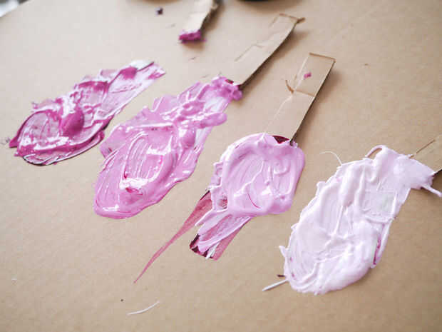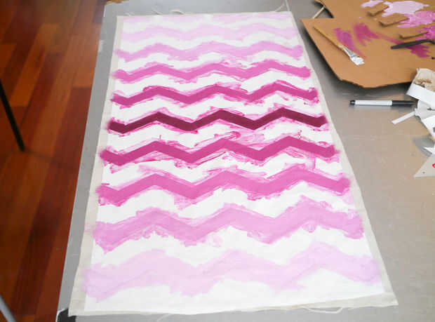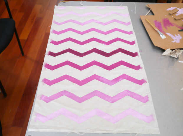 La sombra más oscura en la almohada es el color de la pintura de tela Burdeos regular. Los otros 4 colores creaban con diferentes mezclas de Borgoña junto con pintura de tela blanca.
