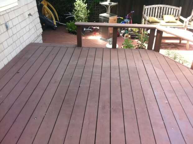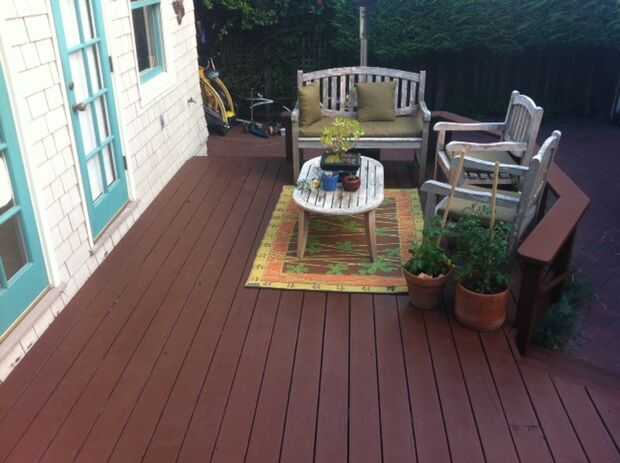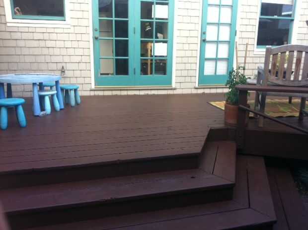 Ahora, si tuviera la oportunidad de instalar una cubierta todo nuevo, probablemente sería utilizar Trex que está hecho de materiales reciclados y no necesita tinción. Pero ya que no es una opción, su tiempo de tinción.