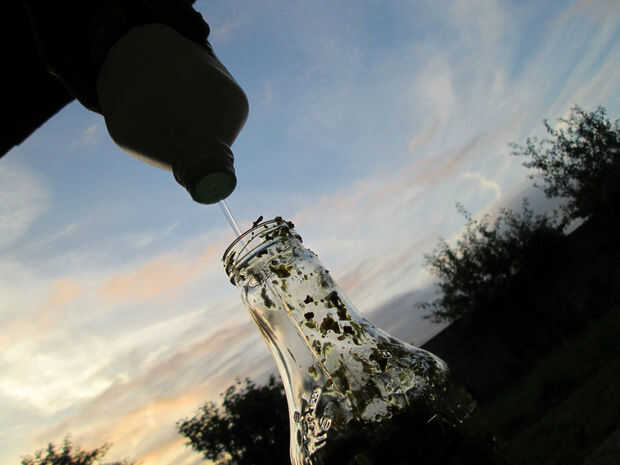 Puesto que puré de nuez en una botella vacía - es mejor dar demasiados consejos que no es suficiente - y añadir algún tipo de alcohol.