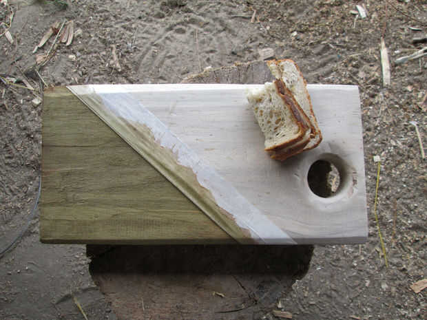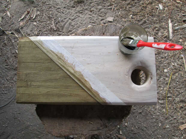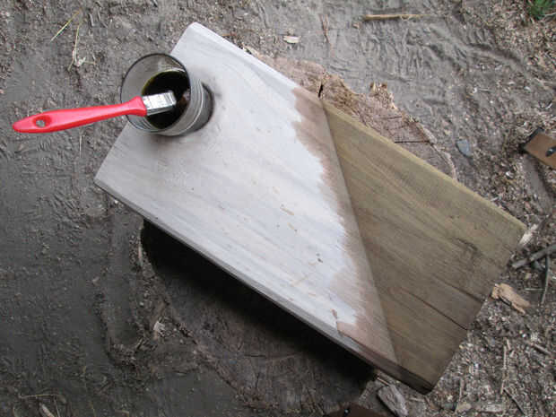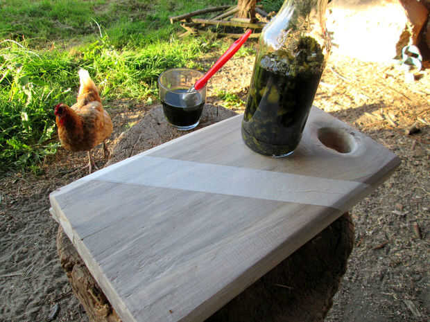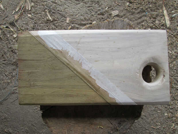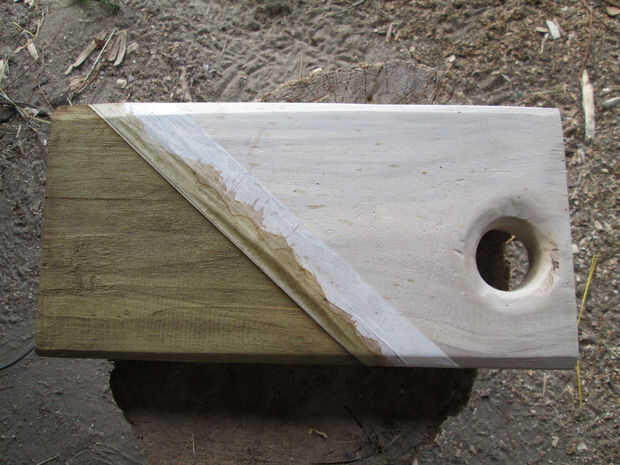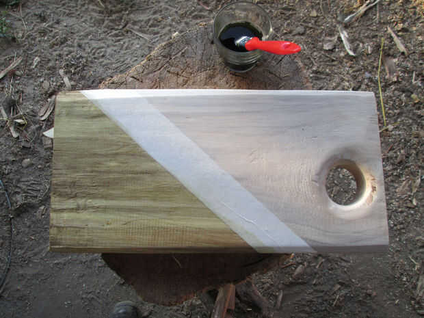 He probado en una tabla de cortar de la álamo reforzado ya que quería una madera muy clara para ver el efecto de la tinción en potencial.