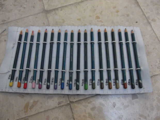 Tiene este estilo (en la foto), tiene 2 lados para poner los lápices en