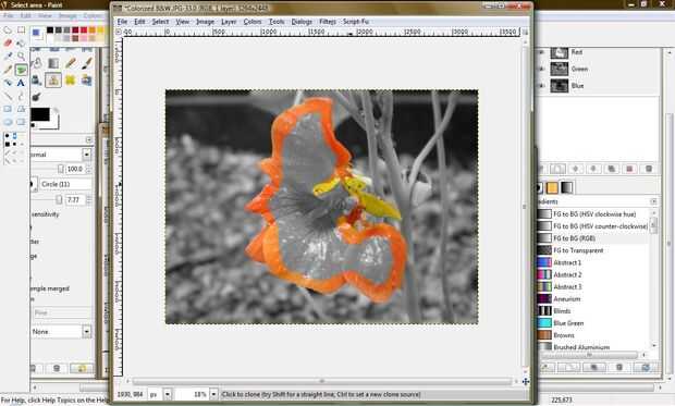Ahora ir al mismo punto exacto en esta foto que ha seleccionado en la foto de color. Haga clic y mantenga pulsado el botón izquierdo del ratón y utilizarlo como haría con la herramienta de pintura. Intento ir alrededor de los bordes del objeto que quiero colorear primero por si acaso tengo que volver a empezar.