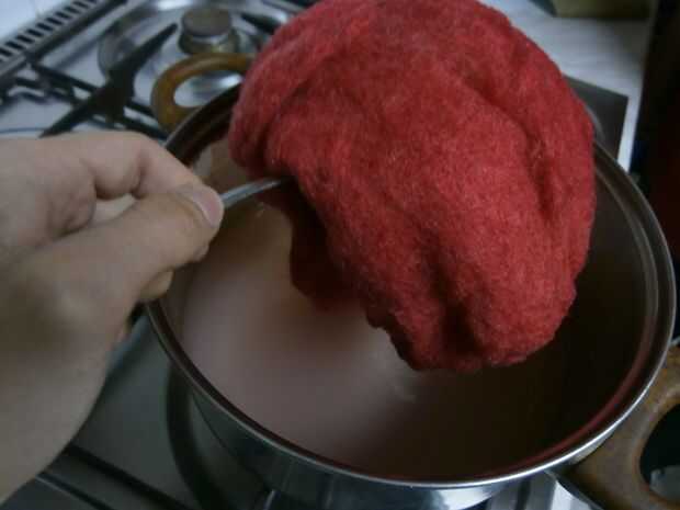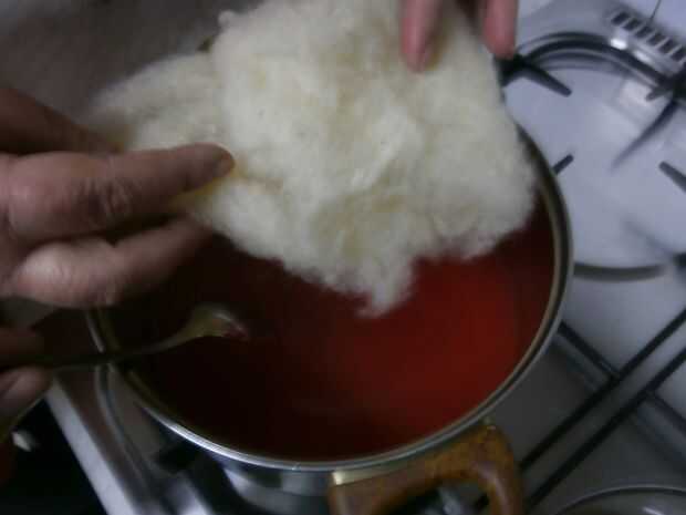 Ahora ponga el hilo en la solución y espere hasta que la solución se convierte en color blanca (como leche) luego sacarla de la vaina.