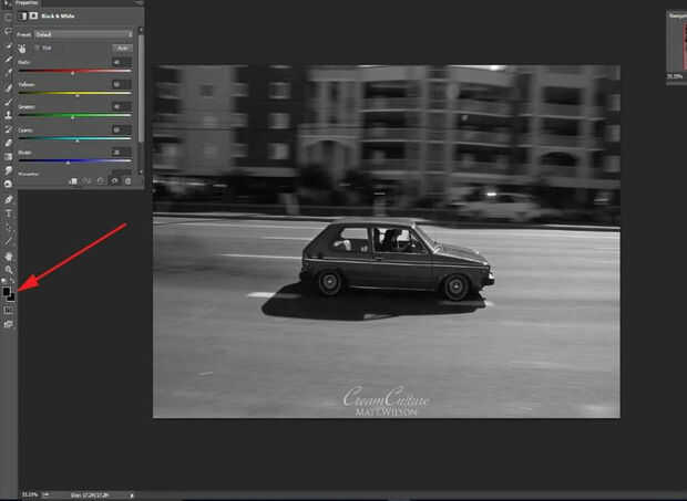 Después de seleccionar la herramienta de selección rápida, hay que cambiar el color de relleno negro. Esto una parte vital del proceso, ya que nos permitirá retomar el tema el color original de la imagen. Para ello, Seleccione el cuadro de relleno en la parte inferior de la barra vertical. El icono de la caja de relleno contiene dos rectángulos superpuestos unos a otros. Seleccione el rectángulo superior y cambio el relleno negro.