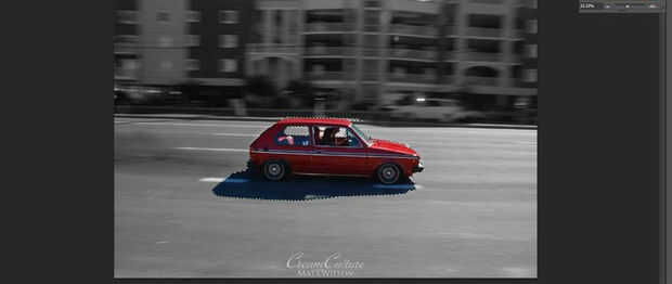 Después de la salida al tema de la imagen, debemos traer el color original hacia el tema. Para lograr esto, simplemente haga clic en alt + retroceso en Windows o la tecla opción + suprimir en una Mac para eliminar la capa de blanco y negro en el contorno de puntos. Al hacerlo recupera el color original de la asignatura se
