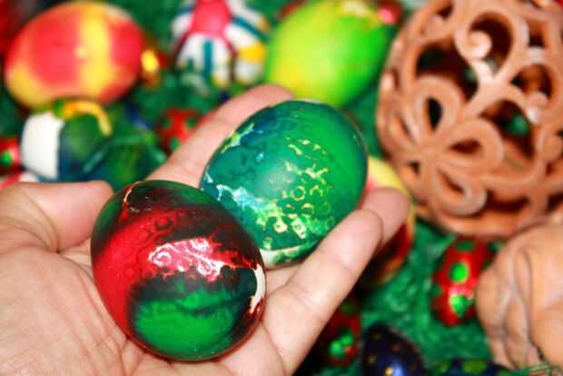 Cada año, mi amiga Zuzana decora huevos de gallina comprada en deliciosas obras maestras. Este año tenía planes ambiciosos para teñir sus huevos con cáscaras de cebolla, la cúrcuma y el jugo de remolacha. Con todo el hablar de los huevos de Pascua, m