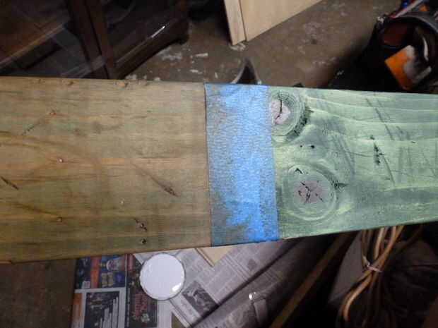 Inspiración! Un marco de imagen en nuestra casa tenía una gran mirada de madera resistida con mezclas de verde y oro. Este fue el look deseado por lo que varias tentativas fueron hechas de replicar este look en un retal de madera con resultados mixtos. Finalmente vi que técnica iba a desempeñar un papel más prominente en la apariencia final de la cortina específica de la pintura o la mancha se utiliza. Al darse cuenta que no debe recibir la perfección en el camino de progreso, suministros fueron comprados y las cosas se movieron adelante.