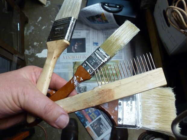 Materiales: Se utilizaron tablas de machihembrado en este proyecto. Que buscan un look rústico, tableros fueron elegidos por carácter en vez de claridad. Buscadas características eran principalmente nudos, albura y patrones de grano prominente. Tableros deformados o agrietados se pasan.