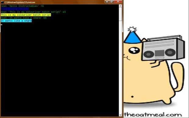 Crear nuevo documento de texto.Guardarlo como ".bat" o ".cmd".Copie y pegue el código siguiente en él.Código: Echo offmode con cols=80 mode con lines=40 color 90 setlocal ENABLEDELAYEDEXPANSION Title Animal fight set money=0 set lvl=3