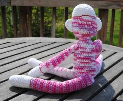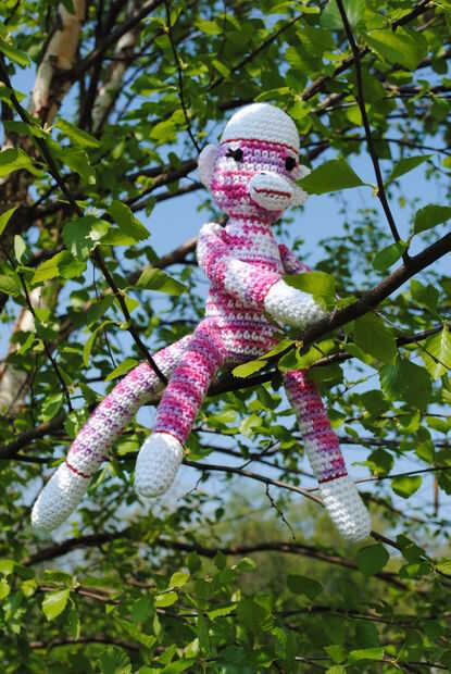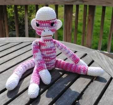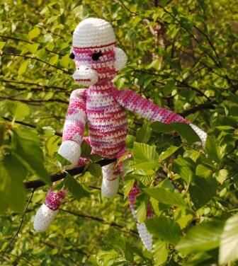Mi razón para hacerla: Adoro el mono calcetín, un icono estadounidense. No he podido encontrar un patrón de ganchillo que capturan el carácter del mono calcetín hecho a mano original. Insatisfecho con mi búsqueda para un patrón, he creado mi propia.