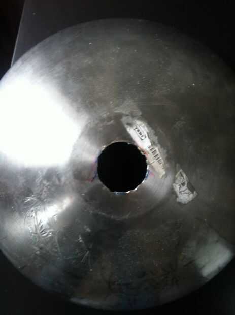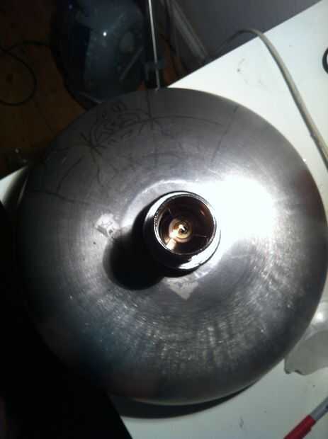 2 - utiliza un dril para cortar un agujero en el botón de la taza y había instalado a la salida para el fregadero.