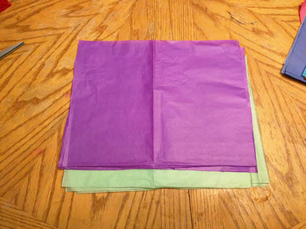 Elija dos colores, usando todas las 4 hojas de cada uno de los dos colores. Apilarlos en el orden que quieres que los colores en la flor terminada.