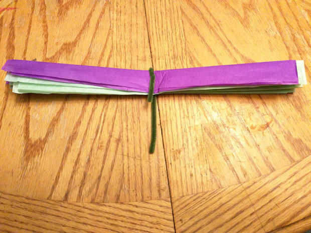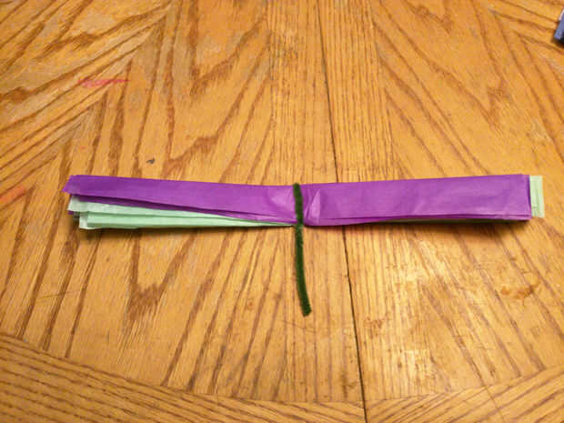 Comenzar a doblar la pila completa de ocho páginas estilo acordeón aproximadamente una pulgada de ancho. Pliegue sus pliegues a medida que avanza. Cuando lo tienes doblado completamente doblarlo en la mitad de longitud sabia y envuelva un limpiador de pipa alrededor de la mitad.