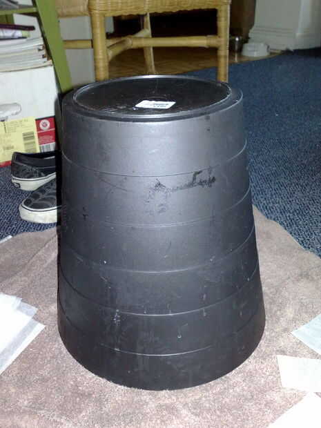 Para empezar - agarré mi bote de basura genérica de 99 centavos y vuelta boca abajo así que se asemeja a una lámpara.