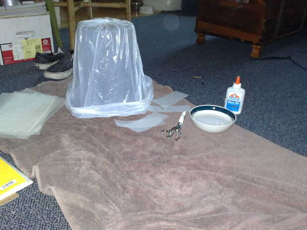 Por lo que siempre hacen un lío al papier mache-ing así que puse una toalla debajo del área que se trabajaba.
