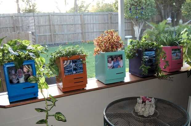 Imprimir todo tipo de imágenes en color para utilizar en las macetas y para los últimos dos años hemos hecho una tradición de reemplazar todas las fotos poco después del año nuevo con fotos del año pasado. También he hecho grupos para regalar con temas como por debajo. Tenga en cuenta los disquetes personalizados que hice para ellos también.