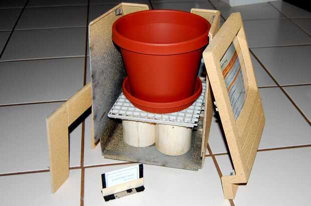 El soporte interior puede ser cualquier cosa que le da la olla una base sólida. Utilizar piezas cortadas de PVC y galleta de algunos viejos artefactos de iluminación para mina.