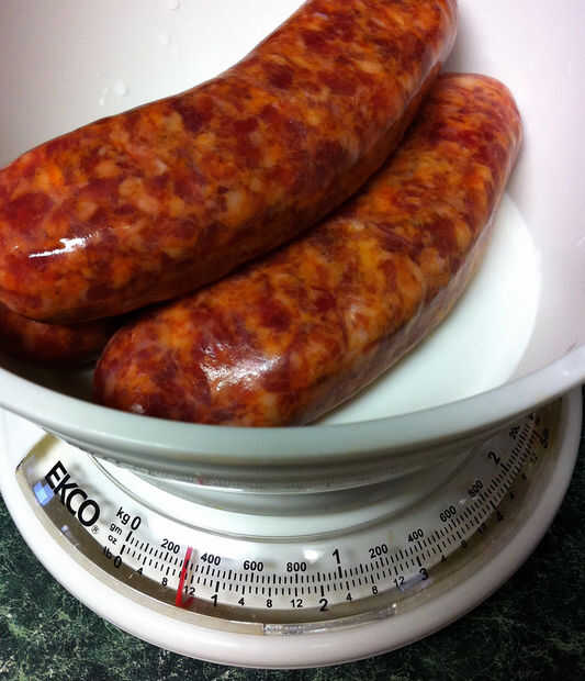 Retire cualquier tripas que pueden estar presentes en la salchicha. Un típico