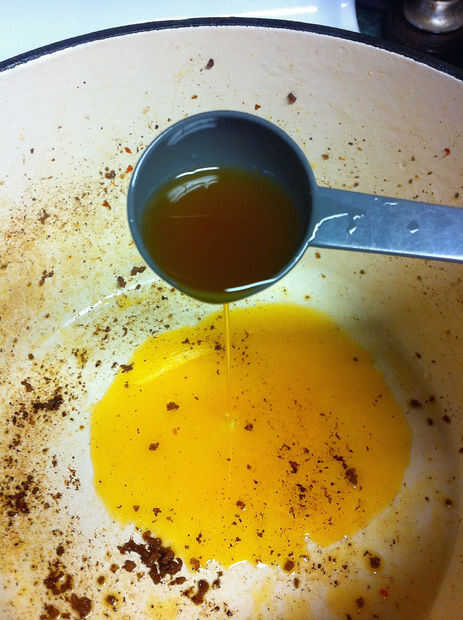 Añadir 1/2 taza de vino, tapa y cocer a fuego lento hasta que se reduzca. No te asustes. Las verduras