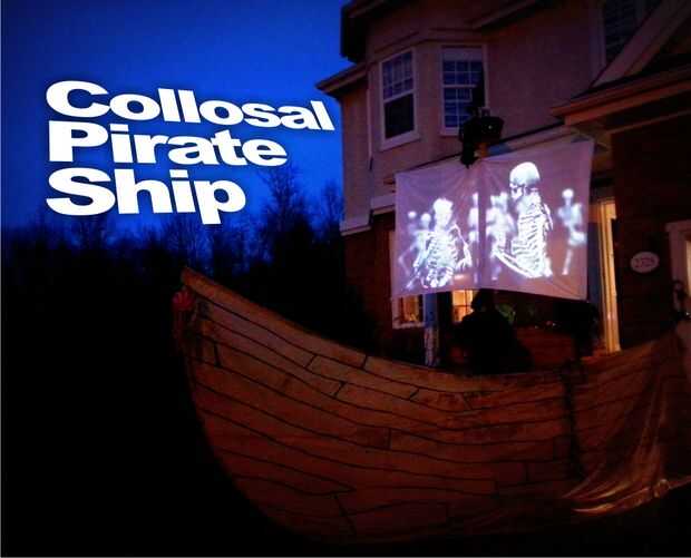Los objetivos del proyecto fueron a hacer tan grande un pirata barco posible al mismo tiempo, reducir al mínimo el almacenamiento necesario ocultar entre eventos (Podemos configurarlo para cumpleaños, o incluso acampar. Utilizamos algunos polos de tela y tienda barato para la construcción, era un poco endeble pero celebrada esta noche muy húmeda. También hemos querido usar la vela para proyecto Halloween imágenes incluyendo nuestro propio efecto de cráneos flotantes.