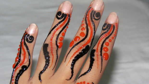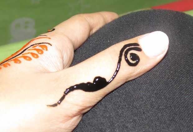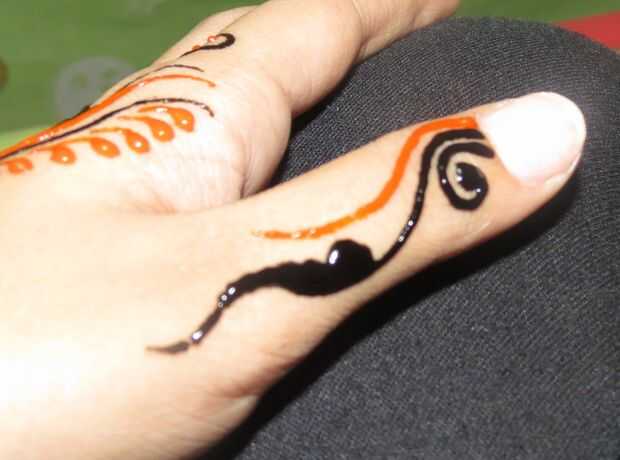 Henna es básicamente un tinte que da un efecto de enfriamiento cuando se aplica sobre la piel y le da color rojo. Se utiliza sobre todo en el pelo como un tinte natural pero comúnmente se utiliza para decorar las manos.Cuando se seca completamente, l
