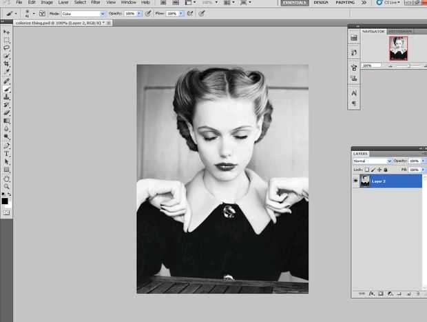 Abre tu imagen en Photoshop. Si aún no es blanco y negro, abra la ventana de ajustes y añadir un degradado blanco y negro capa (imagen -> Ajustes -> mapa de degradado). Combinar las capas una vez que haya terminado.