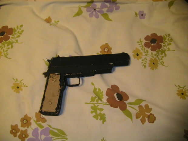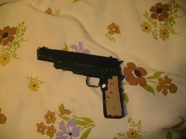 Es sólo una ballesta en forma de una Colt M1911. Eso es todo. Usted sabe que usted quiere uno.ADVERTENCIA ESTO NO ES UN JUGUETE TENGA CUIDADO DE NO DISPARAR A NADIE (EXCEPTO EN DEFENSA PROPIA, ESO ES LO BUENO SUPONGO). SI USTED ES UN IDIOTA, TIRÓN, B