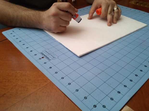 Usando el palillo del pegamento, pegar la hoja sobre la cartulina. Repita para todos los tableros de tres.