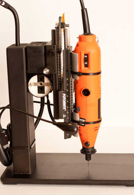Búsqueda para el "Taladro" en instructables y usted encontrará cientos para hacer un stand DIY convertir un taladro de mano en una prensa del taladro. Lo que carecen todos es una forma de controlar la velocidad del taladro. Si usas uno con un ta
