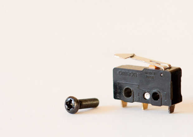 El tornillo debe ser el tamaño correcto y el hilo para unir los pequeños orificios en el riel. He tenido que agrandar un un agujero poco del interruptor, que era demasiado estrecho para tornillo. Tenga cuidado para no freno la caja plástica del interruptor.