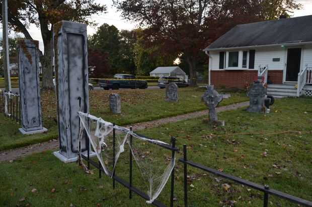 esto es bastante bajo tecnología hemos hecho mi pareja en un cementerio para Halloween. Hemos encontrado una docena decoraciones de piedra sepulcral de espuma en una tienda de dólar y había atornillado a un traje verde. Algunos murciélagos en alambre