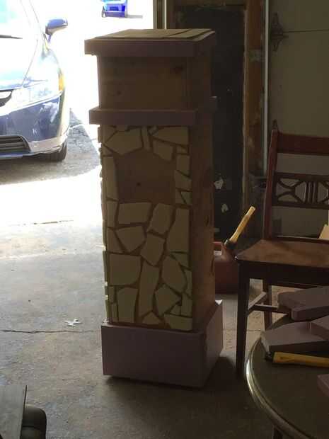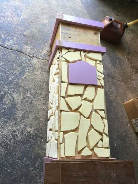 En la parte inferior de las columnas, usé mi espuma y creó una frontera para encajonar la columna. Me aseguré de no tener la espuma tocando todo el camino a la tierra. Al estar de pie, no quiero que haya ninguna presión sobre ellos para ayudarles para desprenderla.