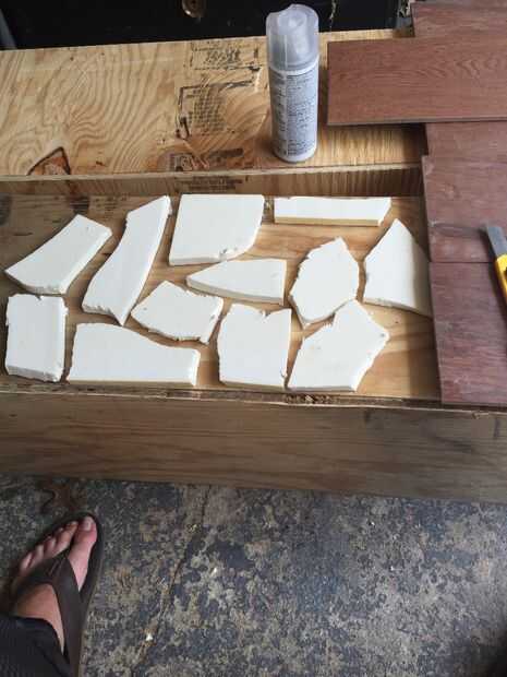 Con su gigante pieza de tablero de aislamiento de espuma, comenzar cortar (al azar) de diferentes formas (grandes, pequeños, horizontales, etc..). Yo quería que ser tan al azar como sea posible porque parece más aleatoria, más auténtica.