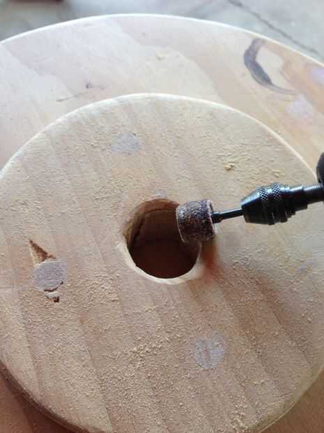 Después de usar la sierra, utilice el Dremel y lija accesorio a redondo los bordes del agujero en ambos lados del disco.