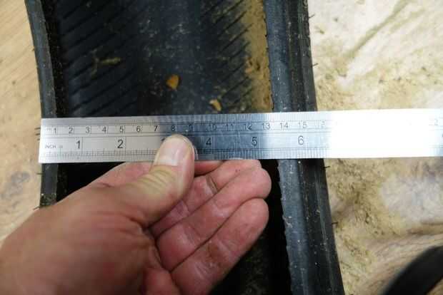 Medir la profundidad del neumático. Nuestro neumático fue 14,5 cm de profundidad en el centro, entre ambas caras exteriores. Los cuatro puestos que mantiene juntos que los redondos de madera sobre el neumático será 2 cm más cortos, es decir, 12,5 cm. cortar estos de las longitudes de 2by2.