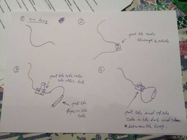 2) pega el traje a través del agujero en la placa.