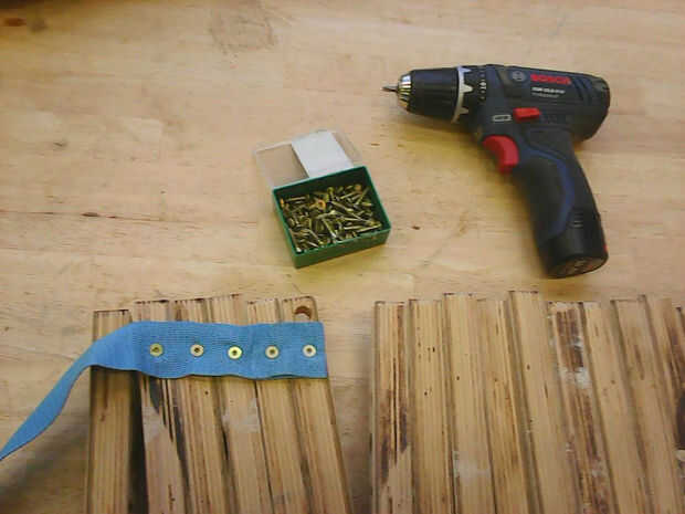 Colocar la correa cuidadosamente sobre los listones y atornillar sólo a través de la correa en los listones.